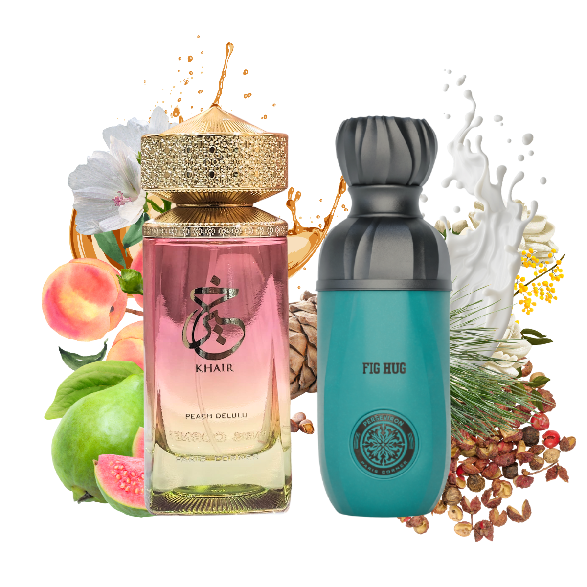 Fruity Indulgence Duo – Fig Hug Perseviron & Khair Peach Delulu Bundle by Paris Corner.