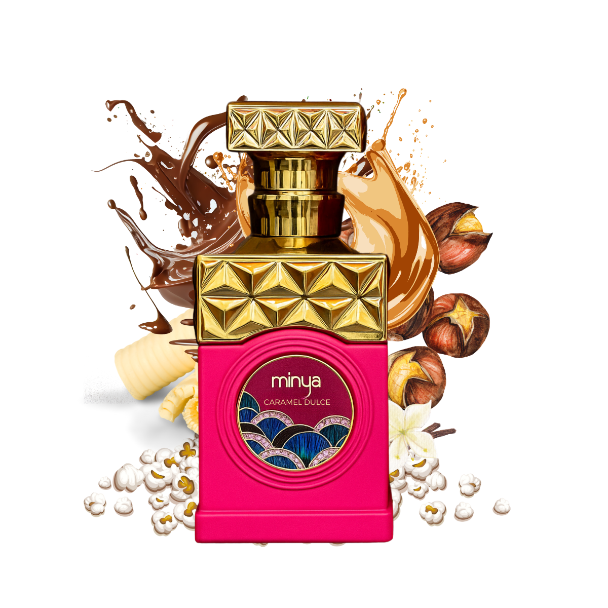 The heart notes of Minya Caramel Dulce has a blend of roasted chestnut, velvety chocolate, and the balsamic warmth of benzoin, creating an irresistible, comforting core.