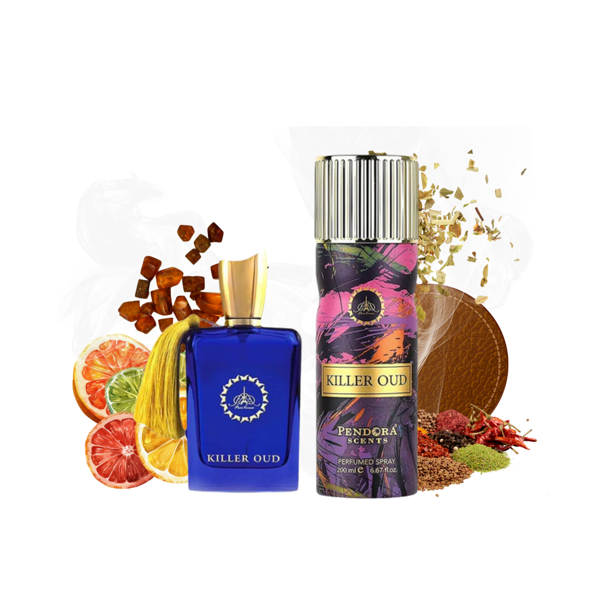 KILLER OUD – Deo & EDP Perfume, the best oud perfume Gift Set for Men is one-of-a-kind and excitingly sharp and ravishing fragrance. FRAGRANCE NOTES – Its heart notes, Opoponax and Incense give this EDP a texture of luminous and raspy feel. Killer OUD dances like fire in a smokey whirl. Leather, oud, patchouli, and sandalwood as base notes awaken a masculine effect. NATURE – A vibrant manly fragrance with Bergamot, oregano, and allspice as top note provide opening with a fresh and spicy burst that has wonderful anti-depressant properties that stimulate the soul and provides courage to share inner-self. LASTING – You should always be careful how much you spray because Killer OUD is extremely potent with extremely long-lasting effects. TYPE – Oud for men of extra masculinity. Could be a perfect addition to any gift sets